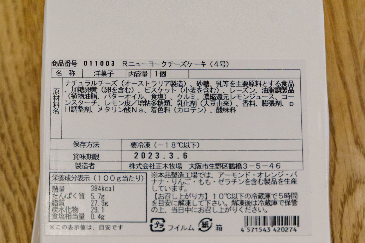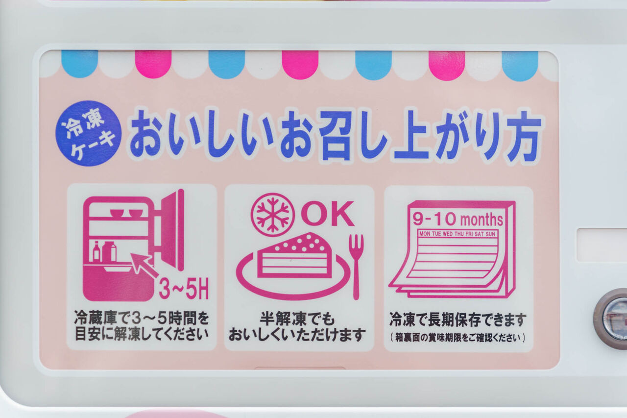 ケーキは冷凍状態らしく、解凍して食べる以外に半解凍で食べてもおいしいとのこと。