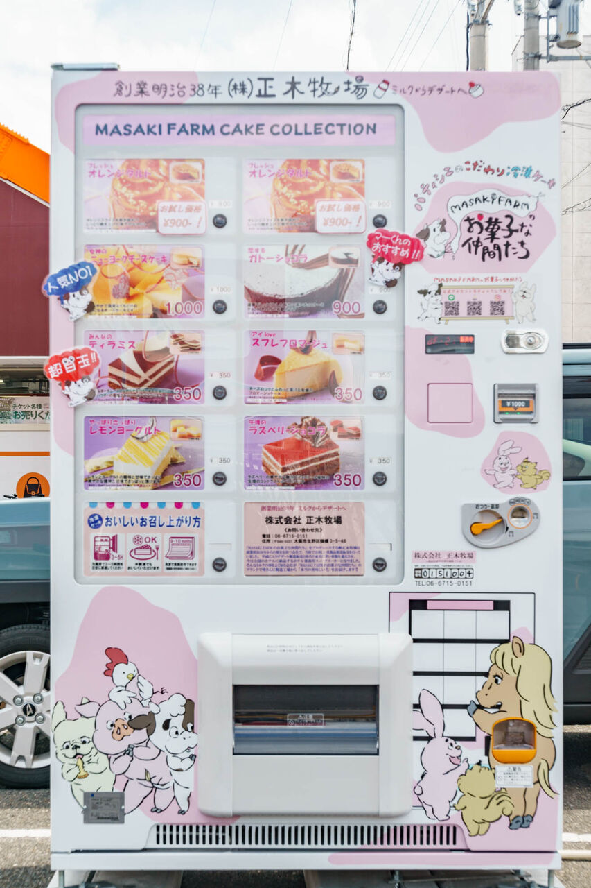 鶴見緑地ちかくの寺方本通にケーキの自販機が設置されてる