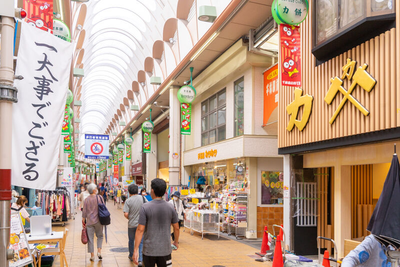 向かいには5月にオープンした「餃子本舗 一大事でござる」。千林大宮方面にはダイソーなどがあります。
