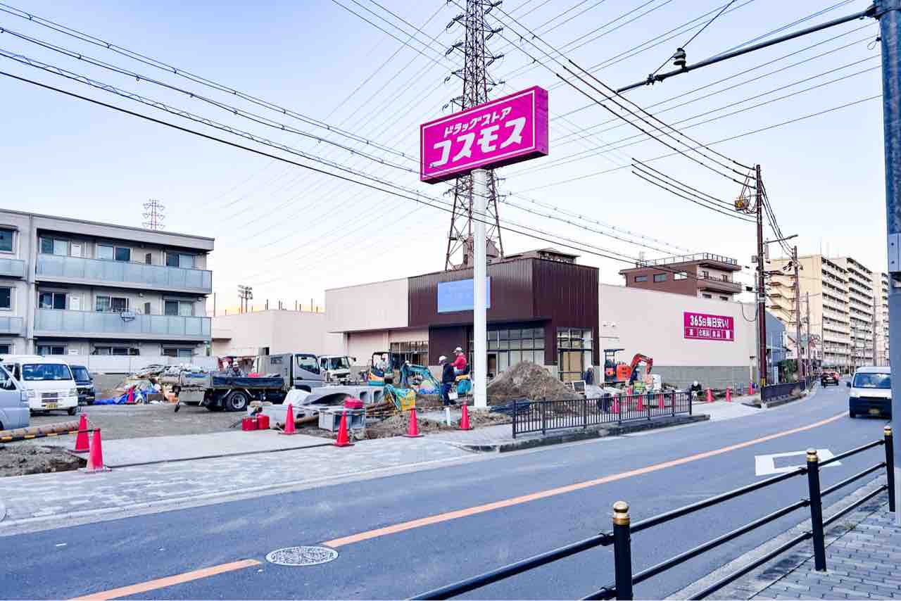 【鶴見区】門真南駅ちかくにつくってるドラッグストア「コスモス」がだいぶできてきてる