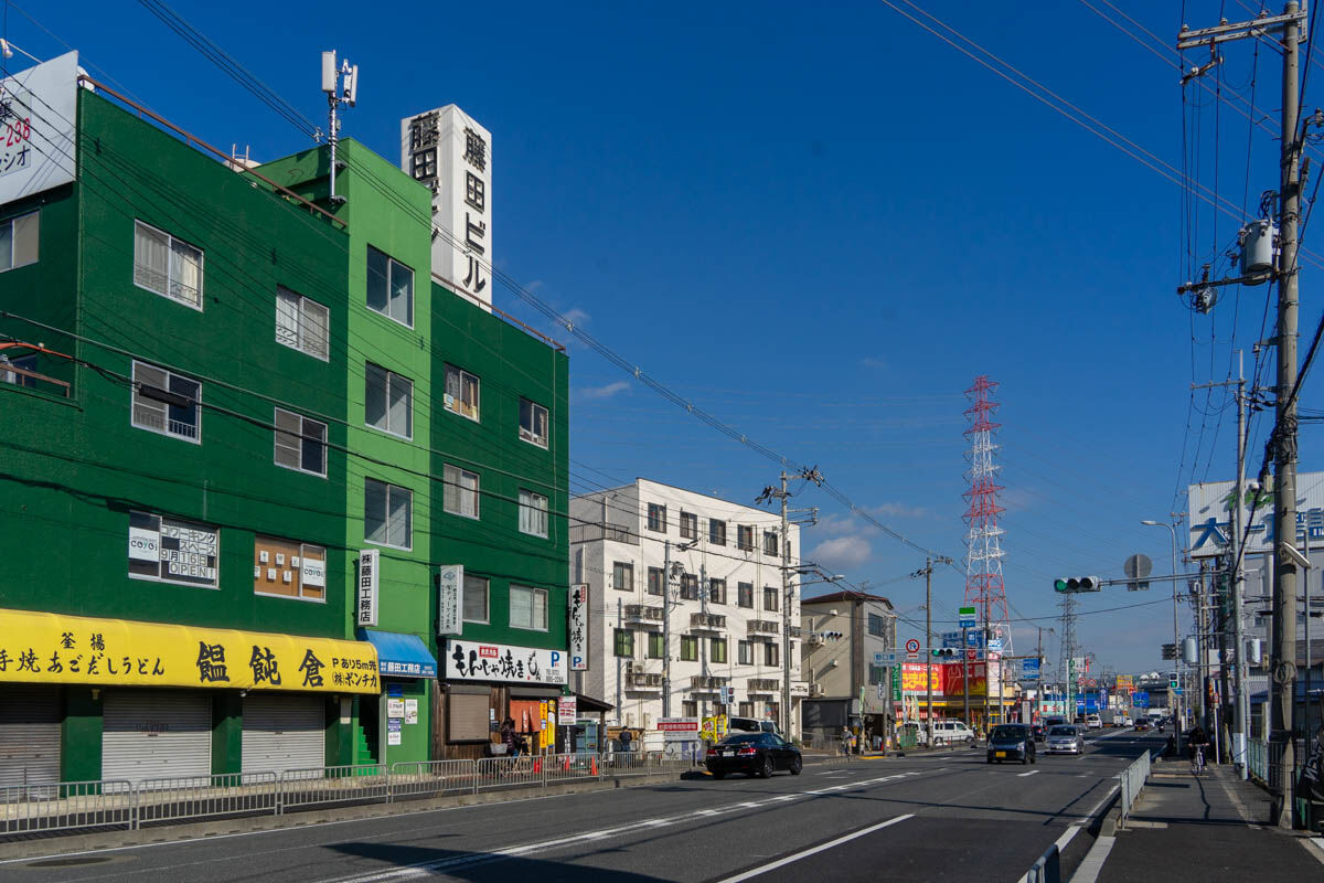 こっちにいくとエディオンやヤマダ電機の前をとおって、中央環状線の先から守口市に入ります。