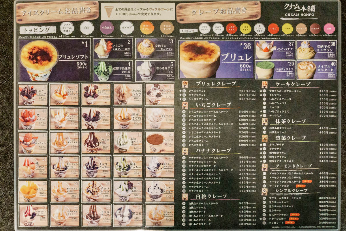 クリーム本舗(→公式サイト)はクリームにこだわったスイーツ専門店で、ケーキ・パフェ・アイス・クレープなどが楽しめるお店です。