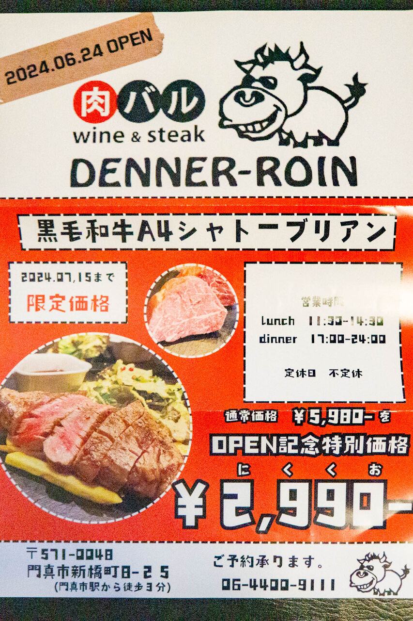 【門真】門真市駅ちかくにつくってた「肉バルDENNE-ROIN」がオープンしてる