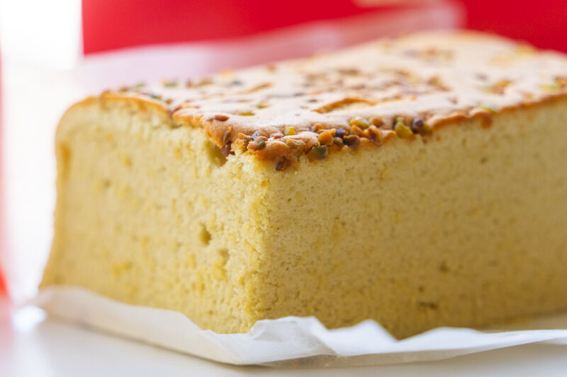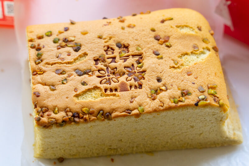 断面。台湾カステラということで、フルフルふわふわジュワジュワの食感で、甘すぎずピスタチオ香る素敵台湾カステラでした!