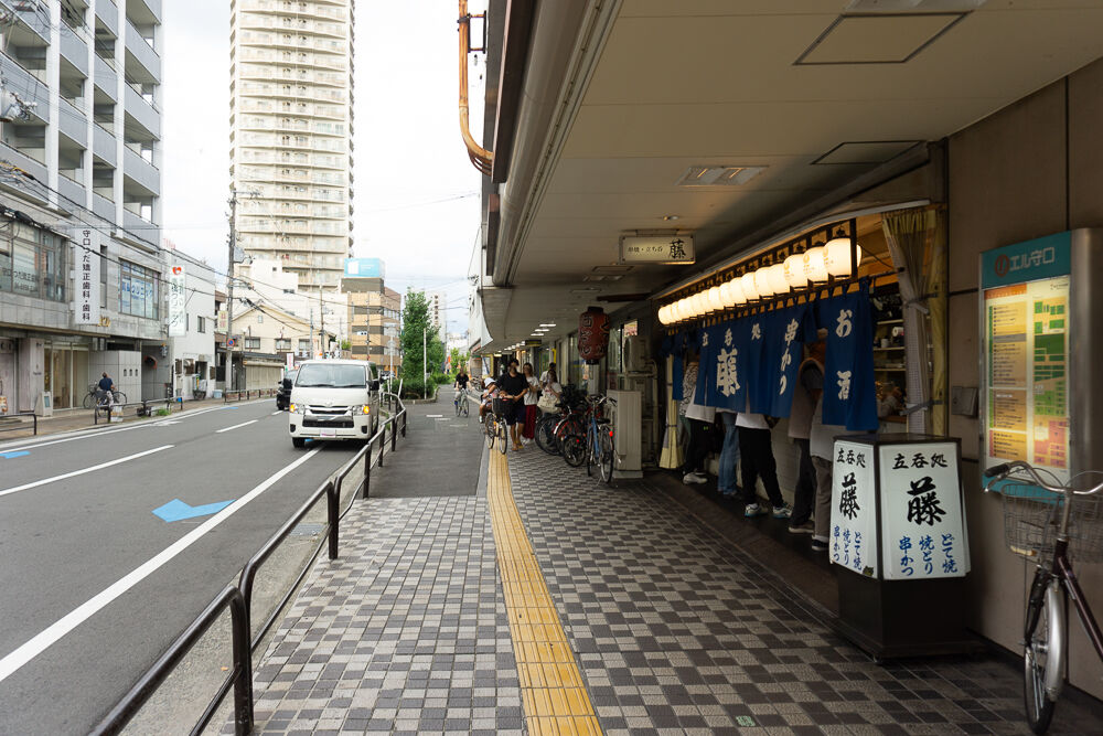 こっちへ行くと、西三荘駅方面へ。写真に写っているのは「立呑処 藤」で、「串焼き 藤」の入口は手前を右に曲がってすぐ。