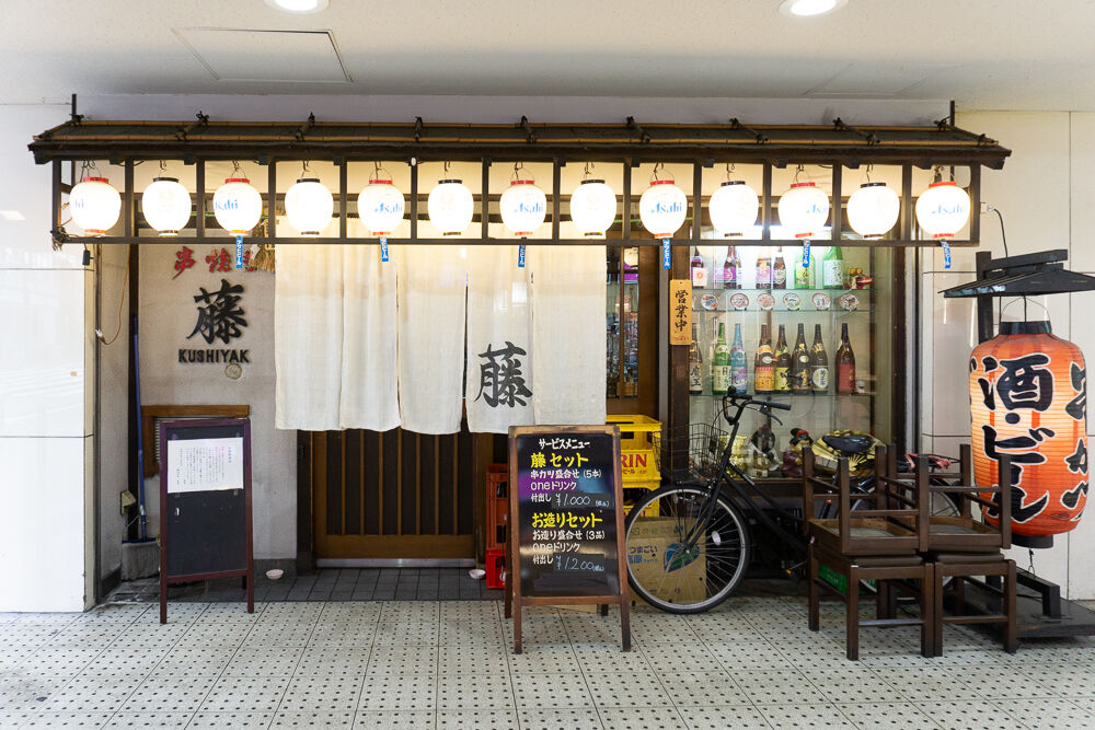 駅をくぐる通路側の「串焼き 藤」↓
