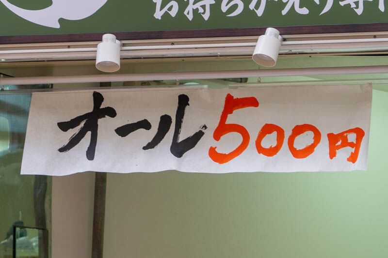 見に行った時はオープンしたての時間だったせいか商品がなかったんですが、オール500円の文字。