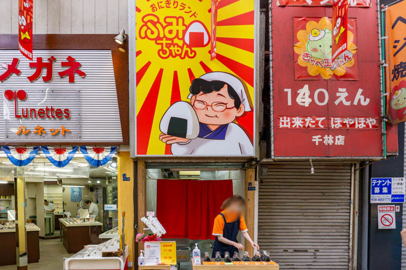 「おにぎりランドふみちゃん」(→公式サイト)は3月に千林商店街近くにオープンした1店舗目があって、今回千林駅前に2店舗目をオープンした模様。