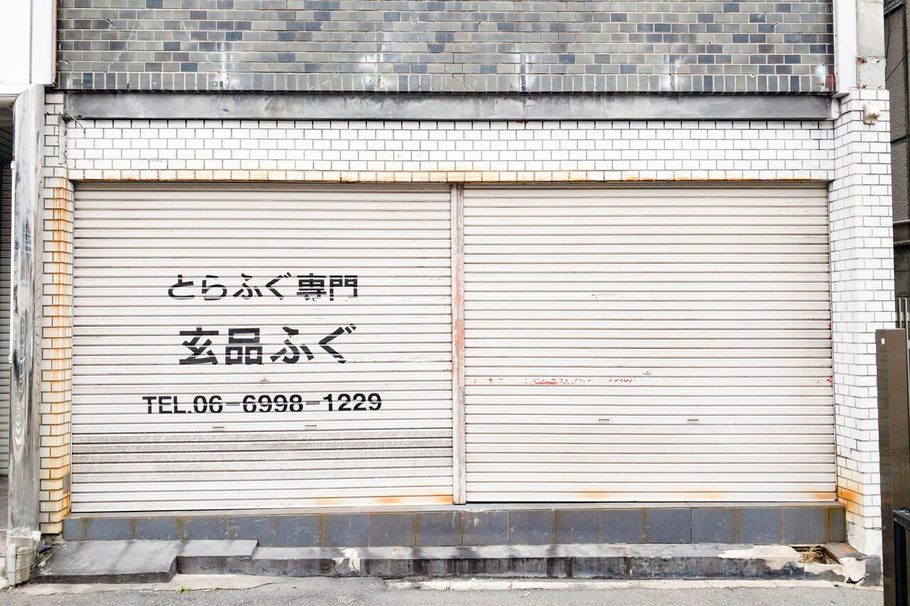 守口市駅近くの「とらふぐ専門 玄品ふぐ 守口店」の看板が外されています。