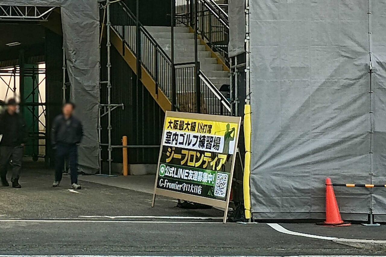 看板によると、大阪最大級の室内ゴルフ練習場なんだとか。工事中かなと思いました。