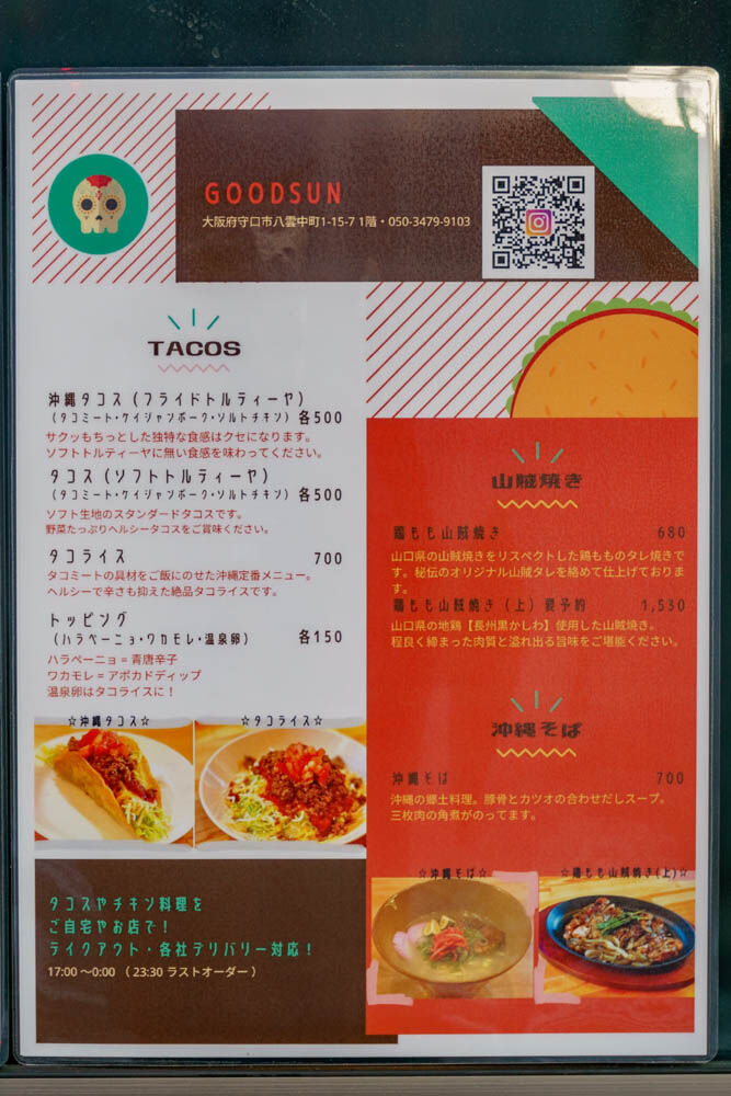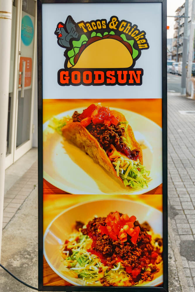 八雲中町につくってたタコスとチキンのお店「GOODSUN」がオープンしてる