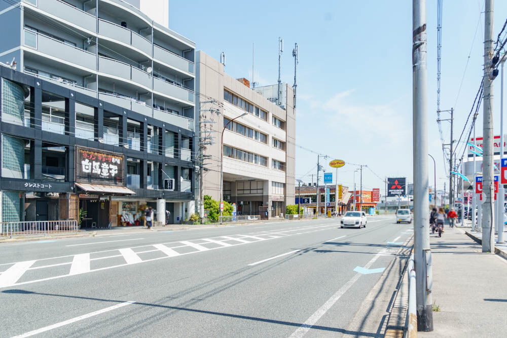 反対の大阪方面にはくら寿司やびっくりドンキーなどが。そのまま進むとイオンモール大日などがあります。お店の真隣にはラーメン店「白馬童子」が。