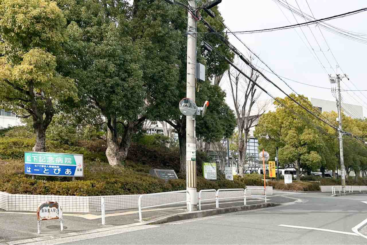お店の向かいに松下記念病院があります。