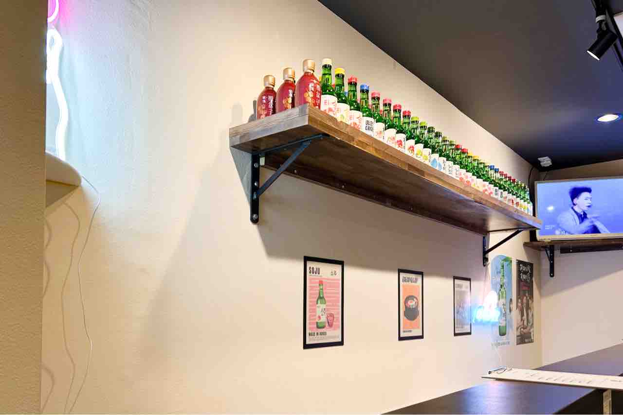 カウンターと大量のチャミスル。6席ありました。