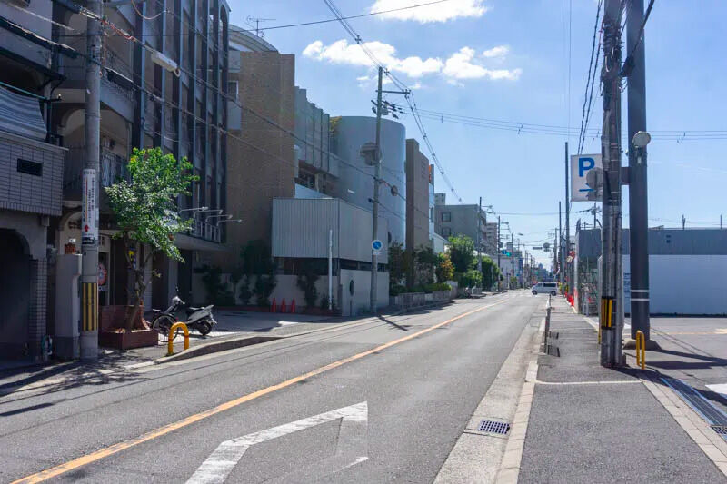 こっちへ行くと、「ライフ 寝屋川黒原店」の前を通って仁和寺交差点方面へ行きます。向かい側にあるのは「ファミリーマート 守口藤田一丁目店」。