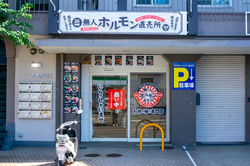 「24h無人ホルモン直売所」は、本部のある岩手県をはじめとする全国に展開しているホルモンの無人直売所。
