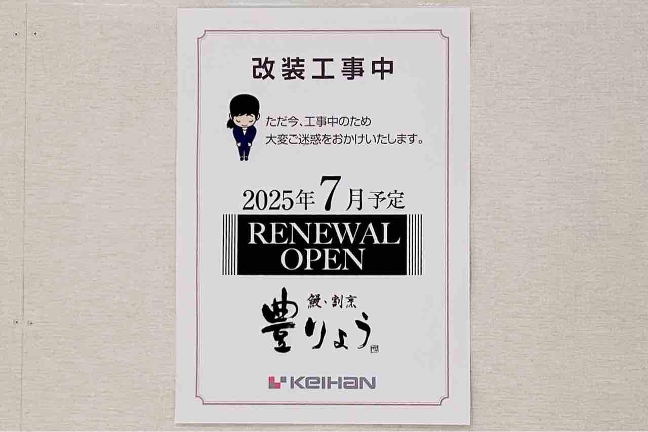 【守口】京阪百貨店の「鰻・割烹 豊りょう」がリニューアルオープンするみたい。2月25日~休業