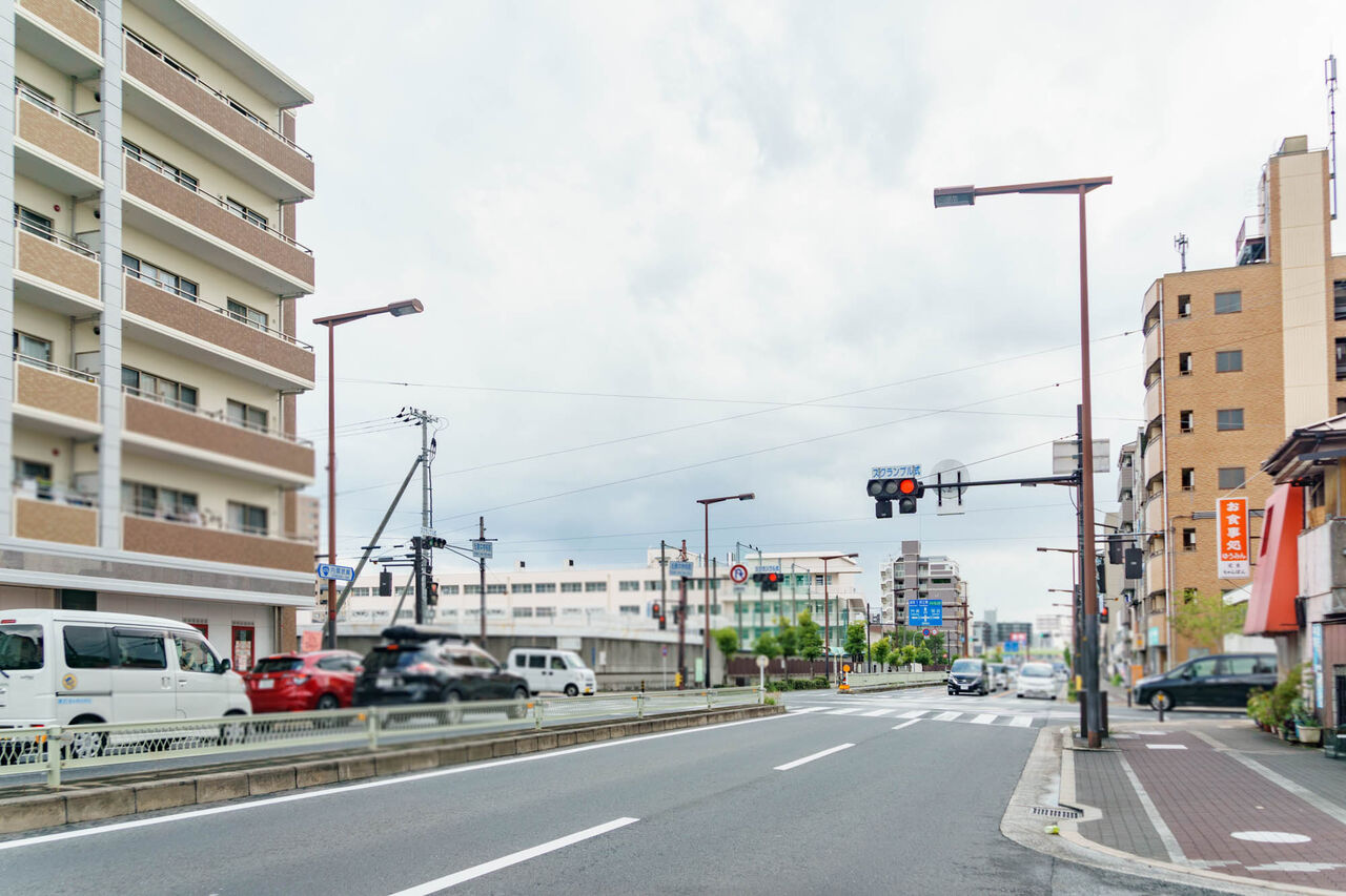 反対にいくと旭東中学校や緑1の交差点などが。そのまま進むと大阪メトロ今福鶴見駅。