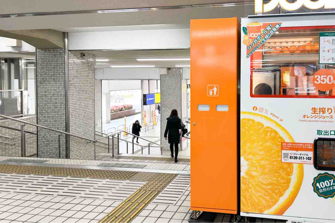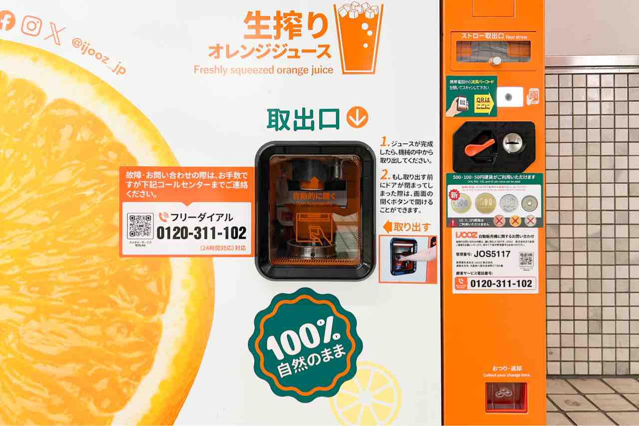 古川橋駅に350円生搾りオレンジジュース自販機「IJOOZ」が設置されています。