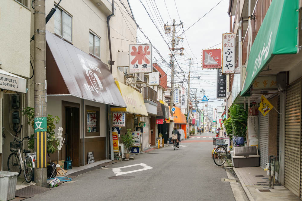 反対に進むと「焼肉 大味園」があり、そのまま進むと「万代 古川橋店」などが。