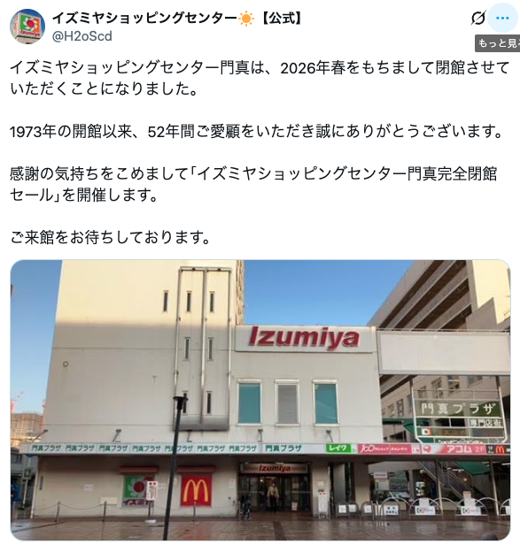 【門真】門真市駅前のイズミヤショッピングセンター門真が2026年春で閉館