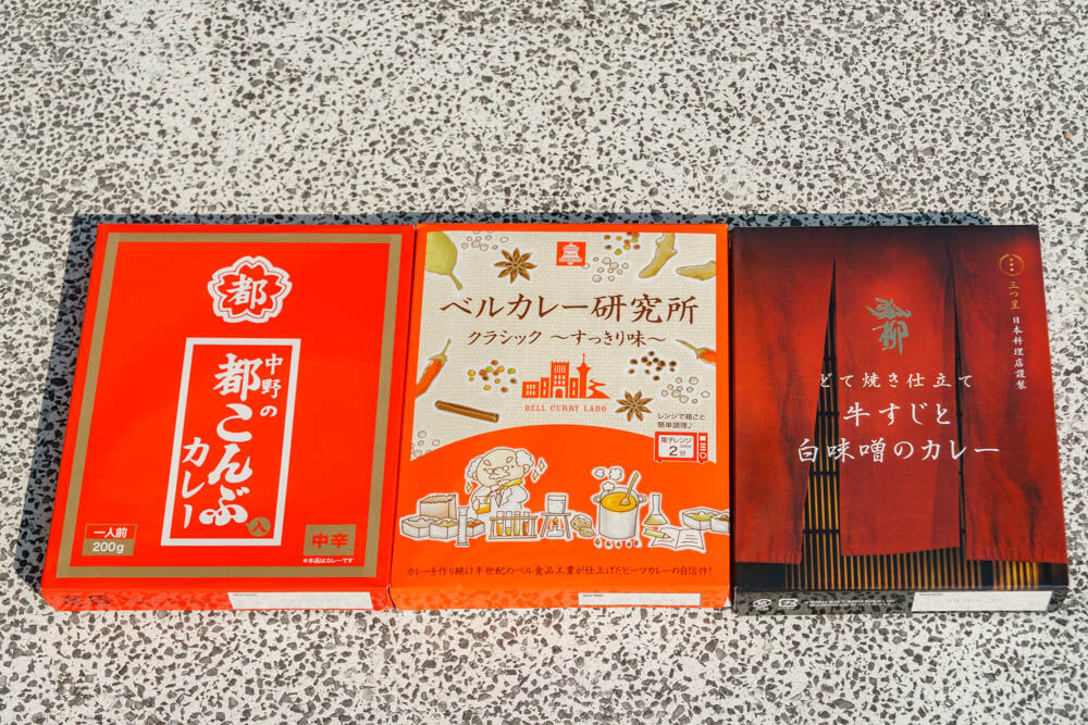 ということで、3種類買ってみました。見た感じそんなにへこんでるとかなく、普通にスーパーとかに売っているようなレトルトカレーと遜色ない感じ。