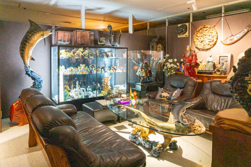 館長が集めたオモシロ可笑しいお宝の数々が公開されているそうで、いろんなジャンルの置物がありました。