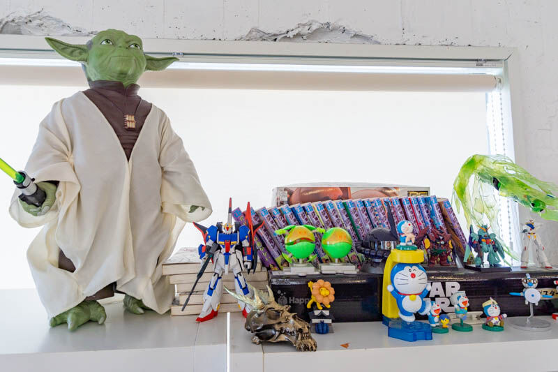 弊社事務所のフィギュアやプラモデルが並んでいるスペースに仲間入り。うーん、カオス。笑