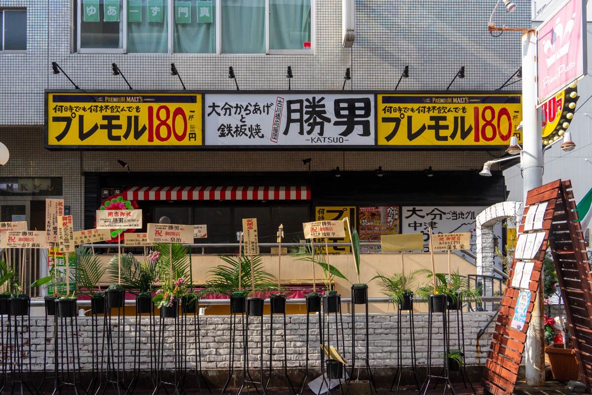 古川橋駅ちかくにつくってた居酒屋「大分からあげと鉄板焼 勝男」がオープンしてる。唐揚げ食べ放題も
