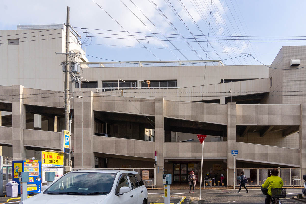 お店に背を向けると目の前に古川橋イオン。
