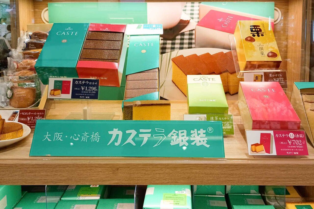 心斎橋のカステラ銀装。抹茶や栗のカステラがありました。