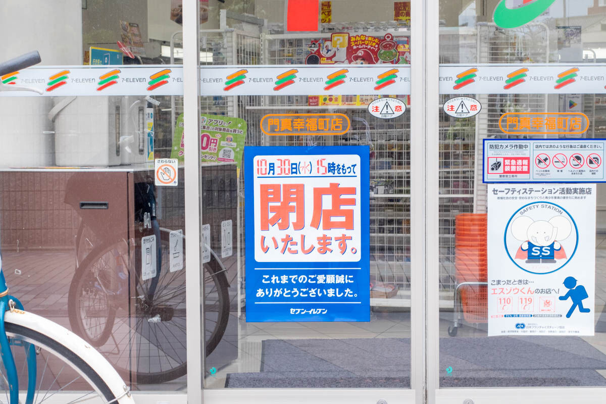 幸福町にある「セブンイレブン 門真幸福店」が10月30日で閉店するそうです。
