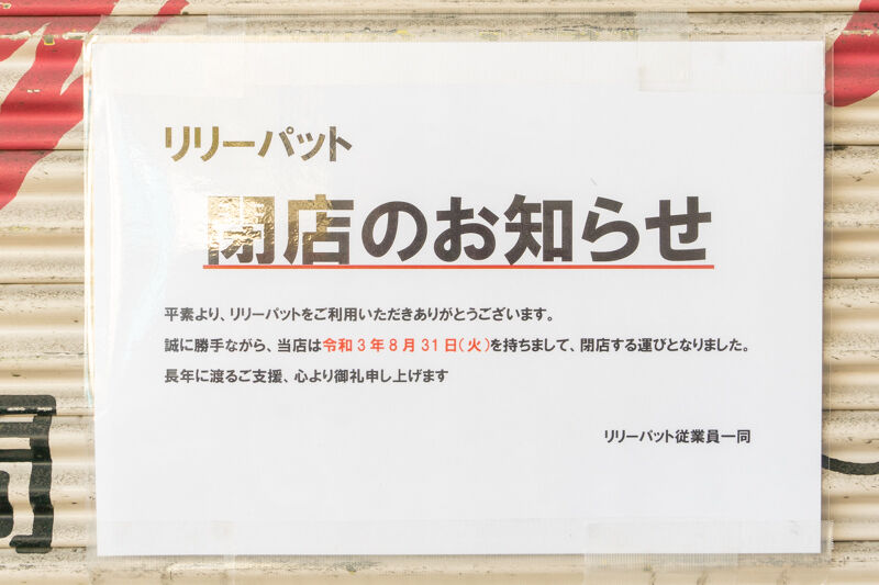 こちらによると、8月31日をもって閉店したとのこと。