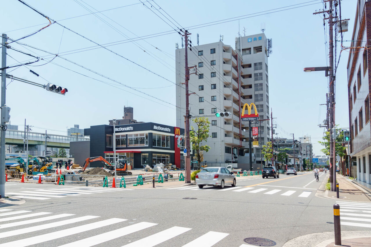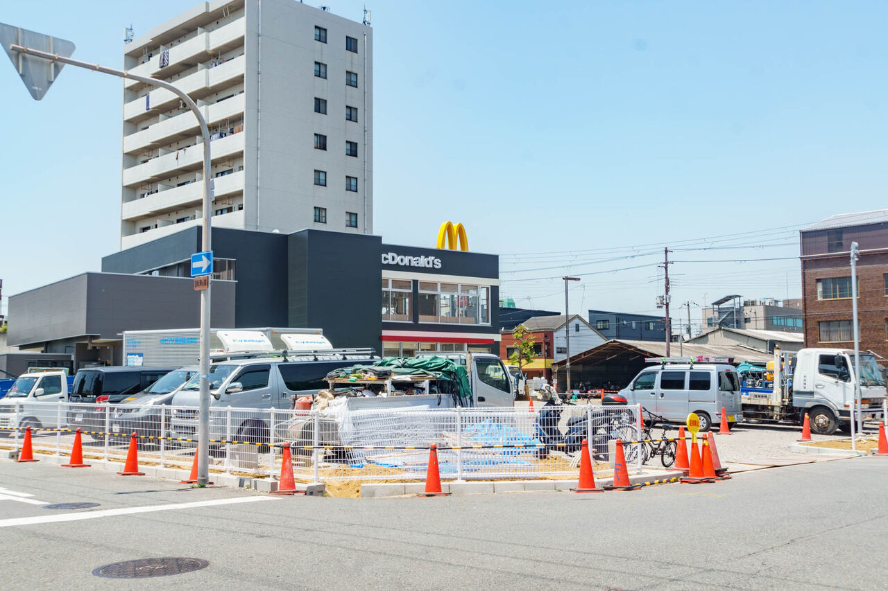 Googleストリートビューによるとこの場所は2020年まで日本タクシーの営業所があったようです。ここにマクドナルドができるということは以前にも記事に。