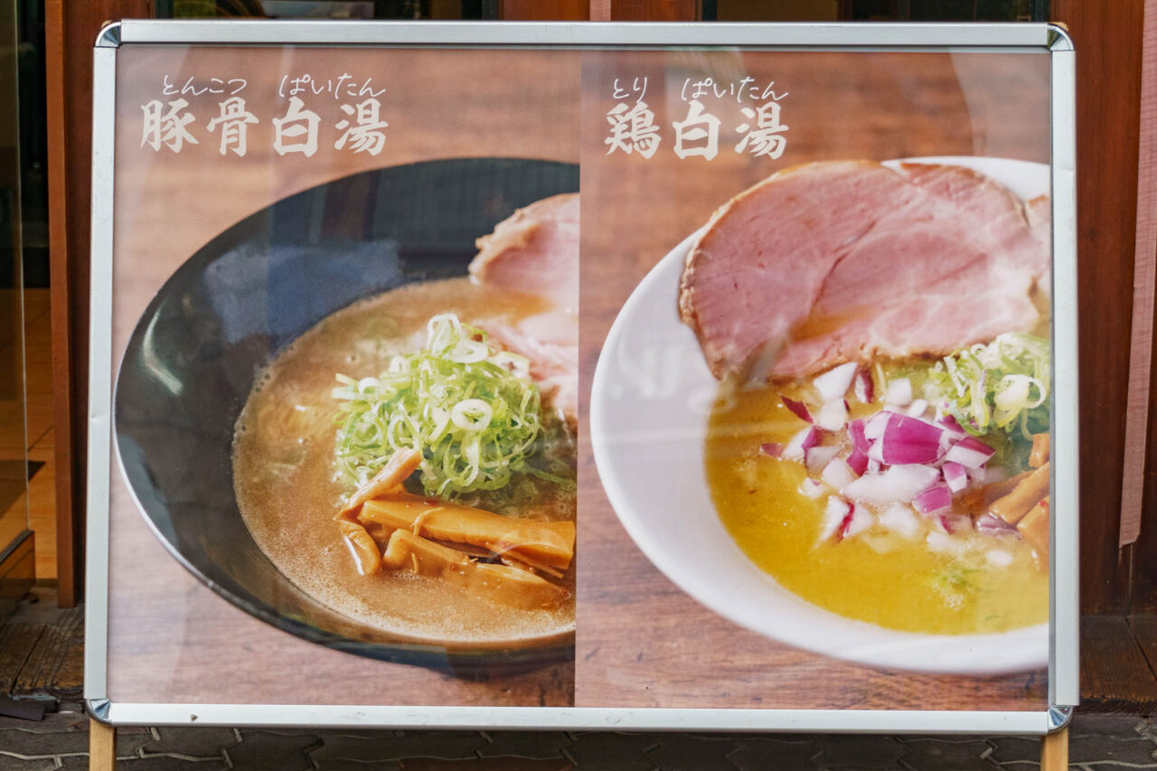 豚骨や鶏の白湯ラーメンがメインで、お昼は餃子ランチなどもやっている模様。