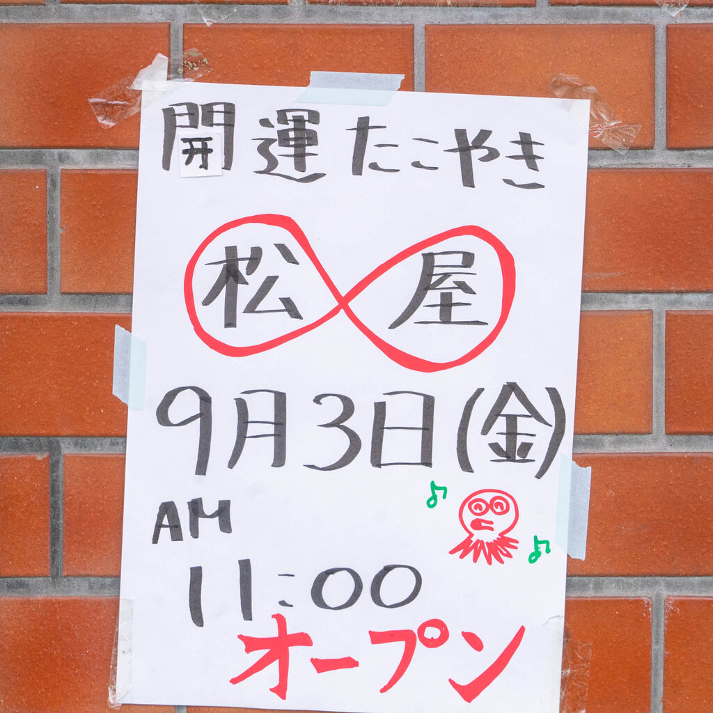 貼紙。開運たこやき松屋は9月3日にオープンしたようです。