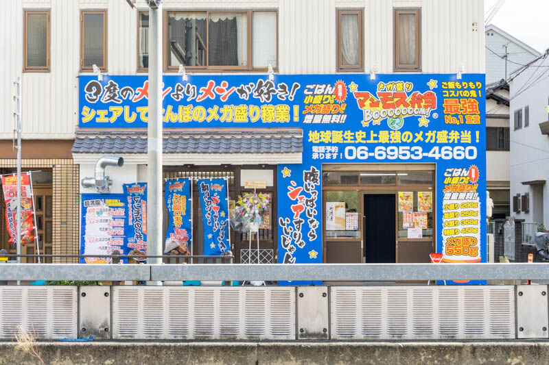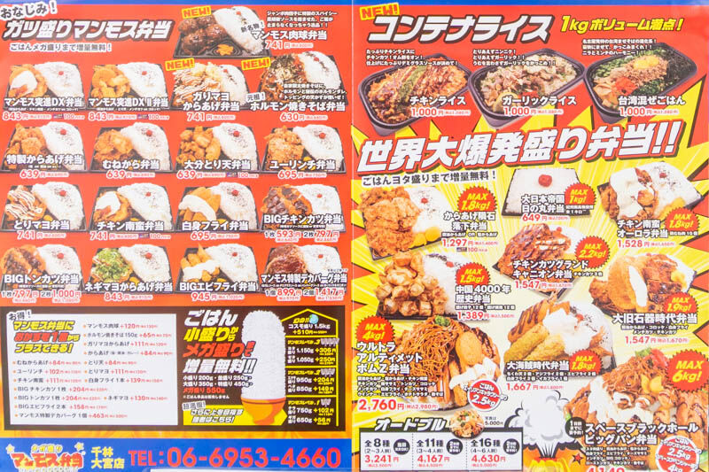 千林大宮駅ちかくにつくってた「メガ盛りマンモス弁当」がオープンしてる。お弁当がすごすぎて頭おかしい(褒め言葉)