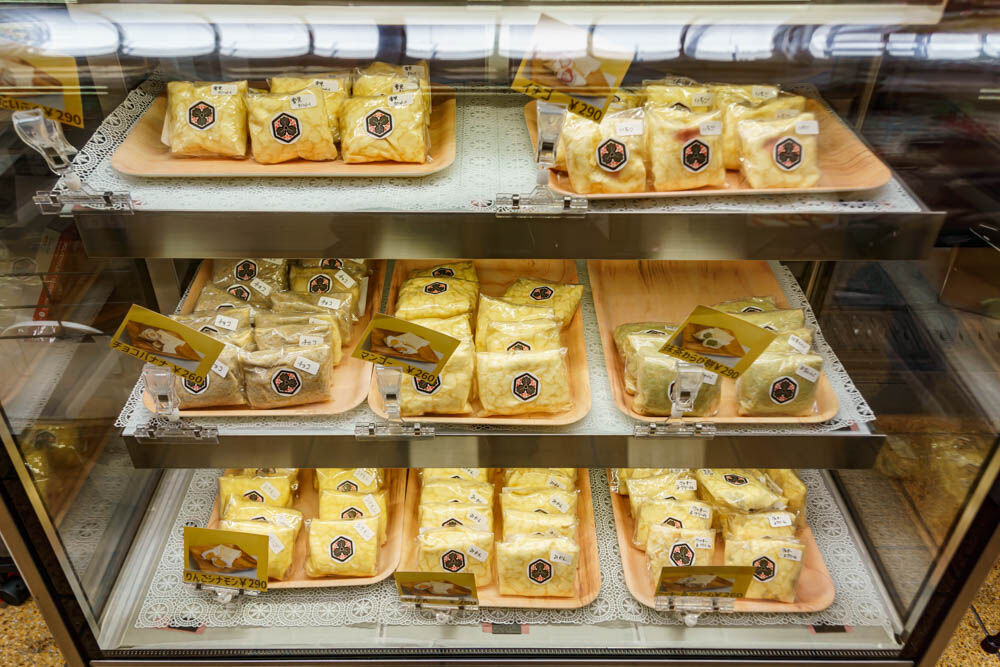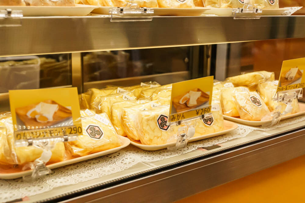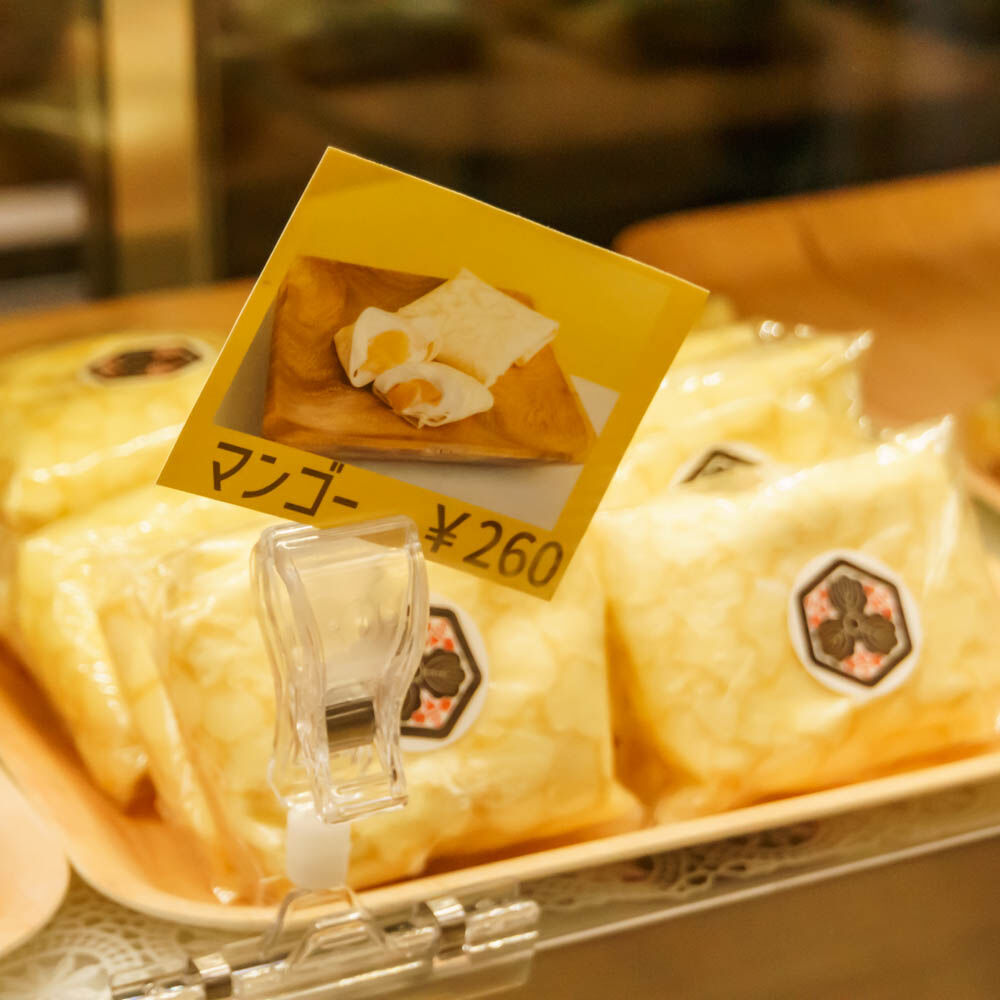 くるくると巻かれたミニクレープ。いろんな種類があります。