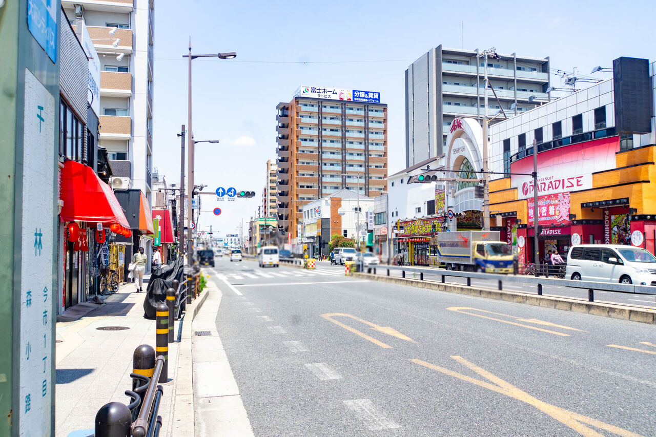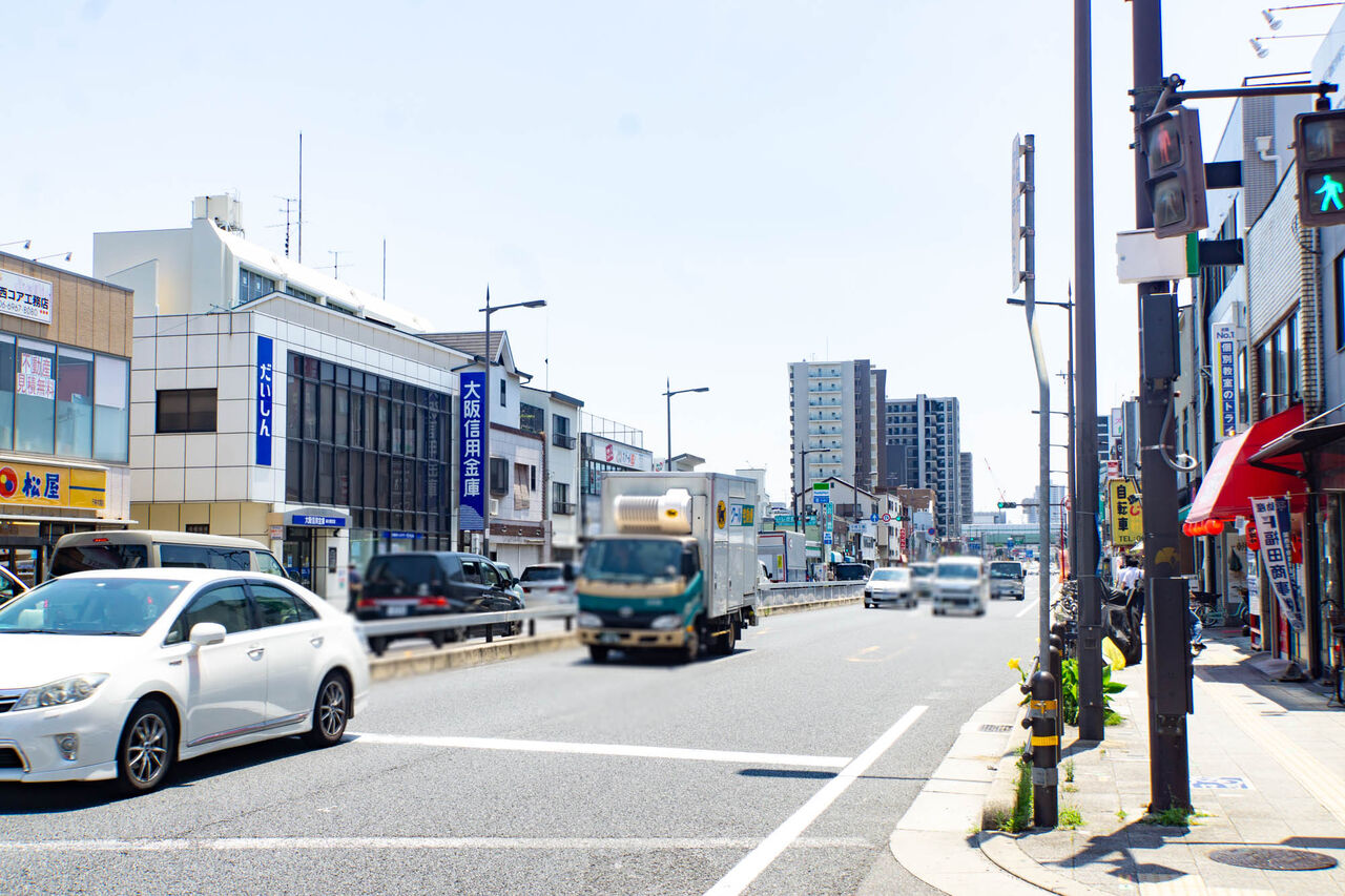 国道1号線沿いを進んですぐに千林大宮駅が。さらに奥に進むと関目駅があります。