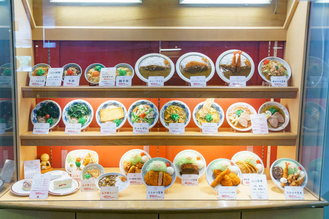 まず入口はいってすぐに食品サンプルのショーケースが。レストラン感あって楽しいやつ!