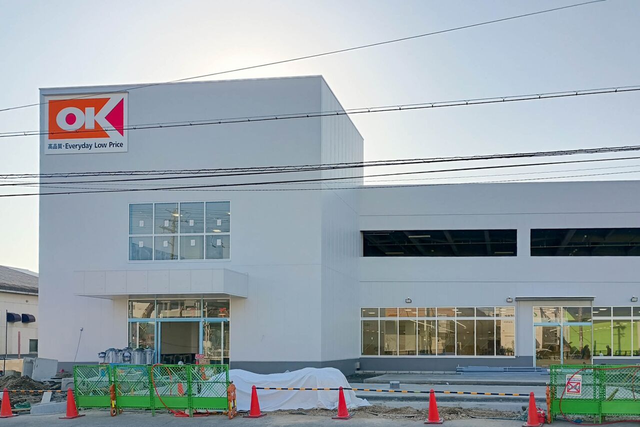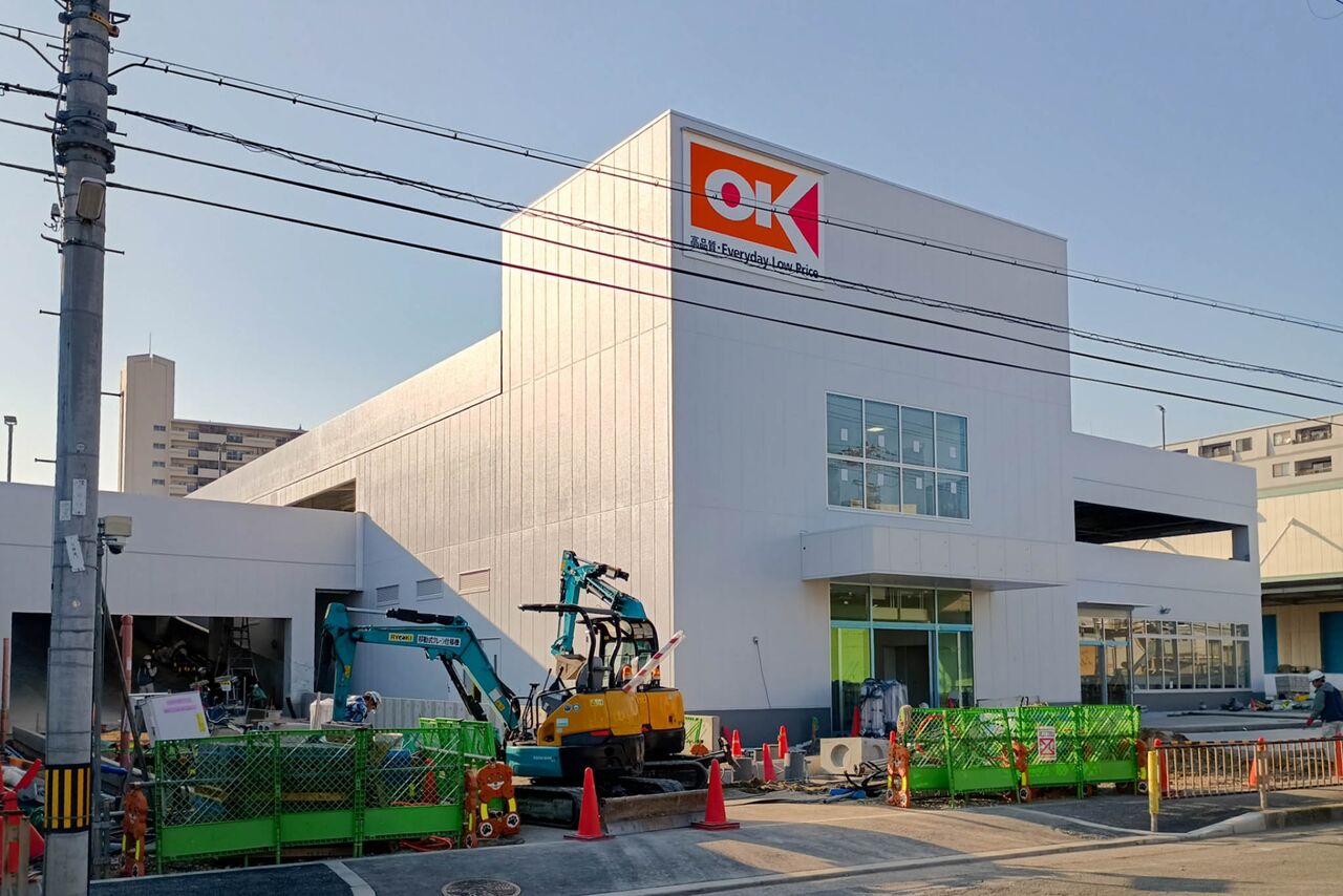 【大東】なみはやドームちかくにつくってる大型ディスカウントスーパー「オーケー」の外観できてきてる。5月オープン予定