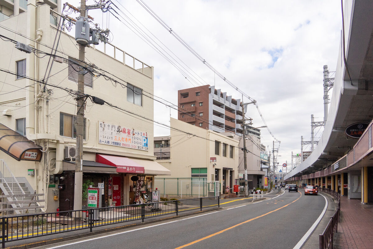 右がお店で左にエル西三荘で、奥の方に西三荘駅が見えています。