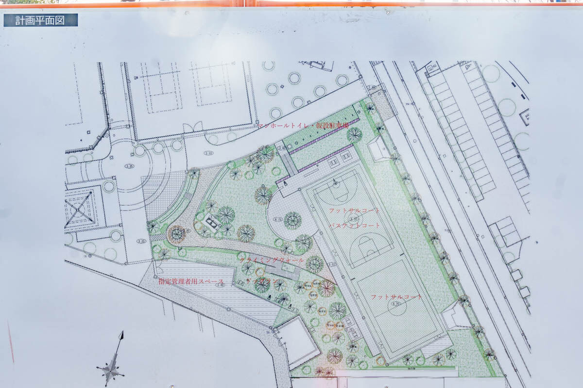 新エリアには有料施設としてバスケットボールコート・フットサルコートが、無料施設としてドッグランが新設されるそう。