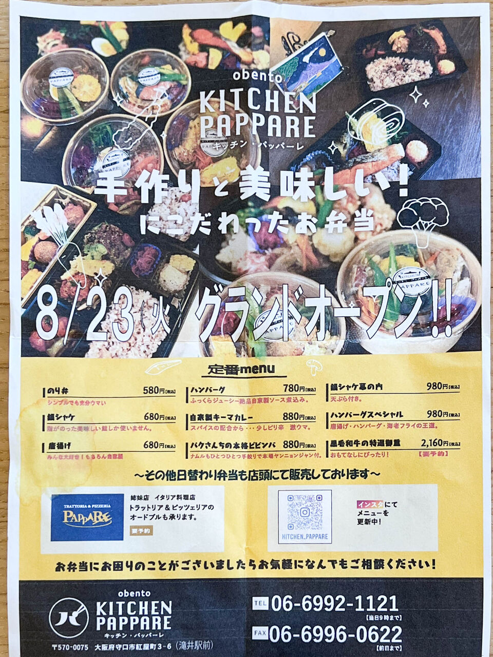 滝井駅前につくってた弁当店「キッチンパッパーレ」がオープンしてる