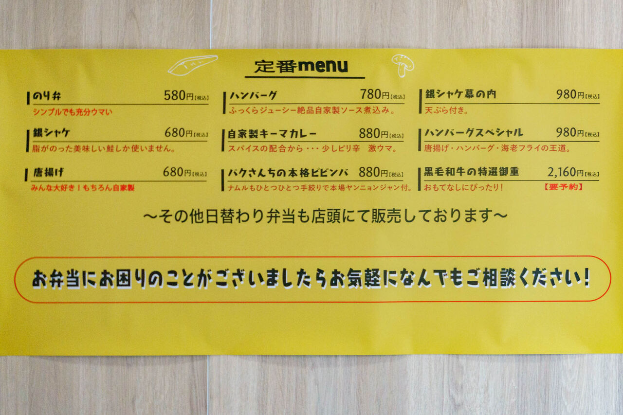 この日は気づかなかったんですが、「黒毛和牛の特選御重」なるデラックスなお弁当もあるそう。どんなんか気になる!