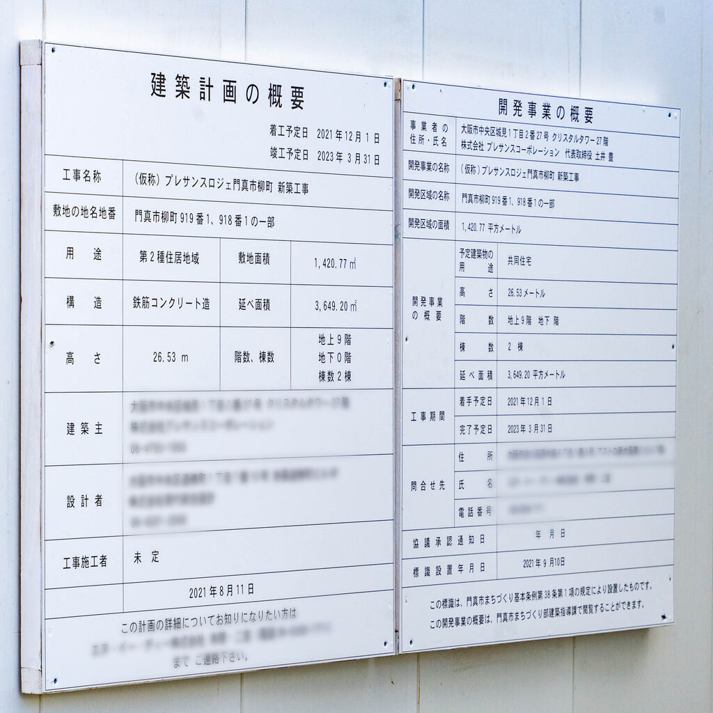 現地にあった建築計画の概要をみると、地上9階建てのマンションができることがわかります。