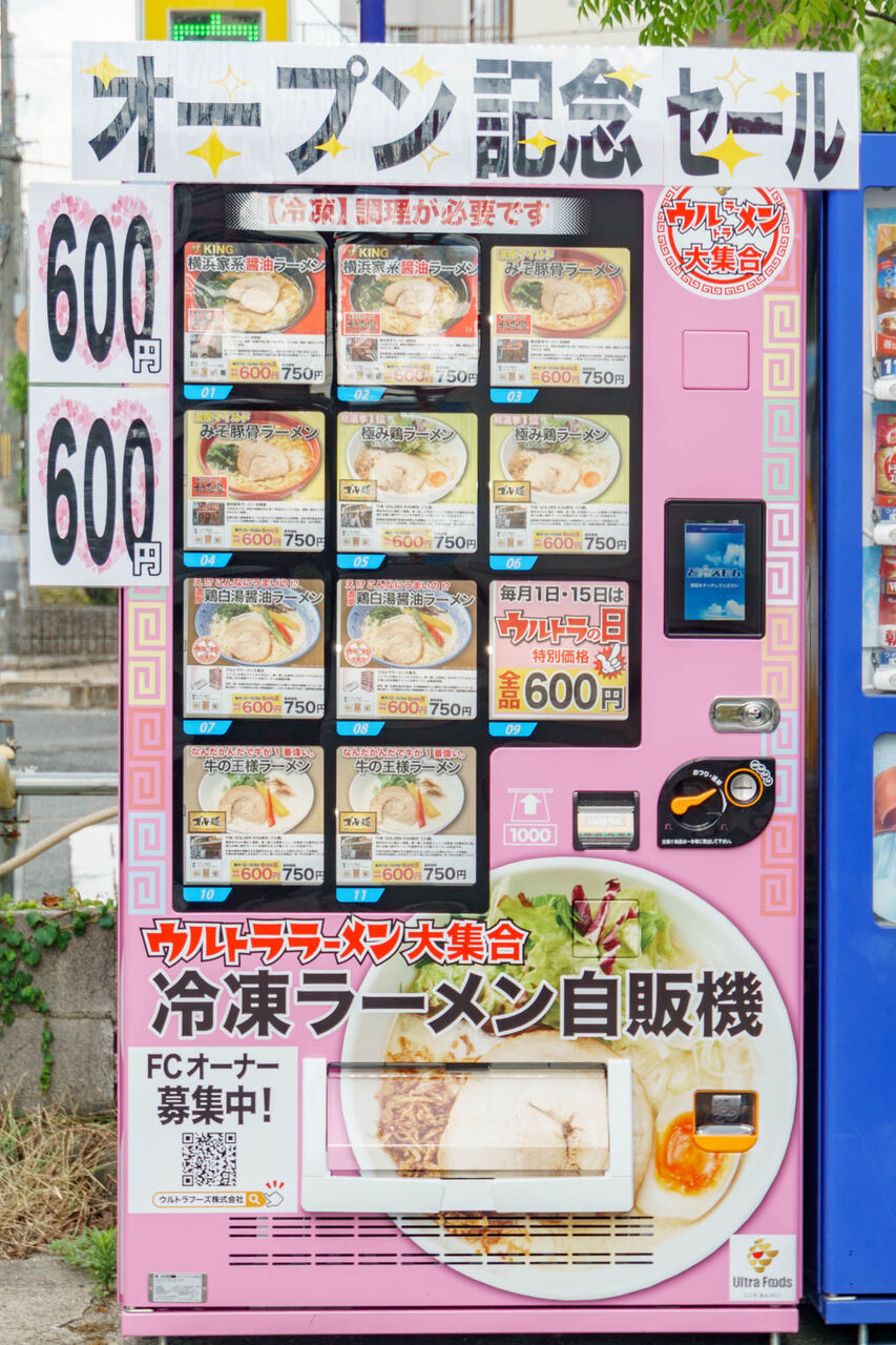 このタイプのラーメン自販機は近隣だと旭区高殿のほか、枚方市や寝屋川市などでも最近増えてきている模様。