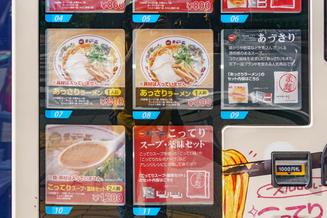 「お持ち帰り de 天下一品!!」と書かれている通り、天一のラーメンを販売している自販機。