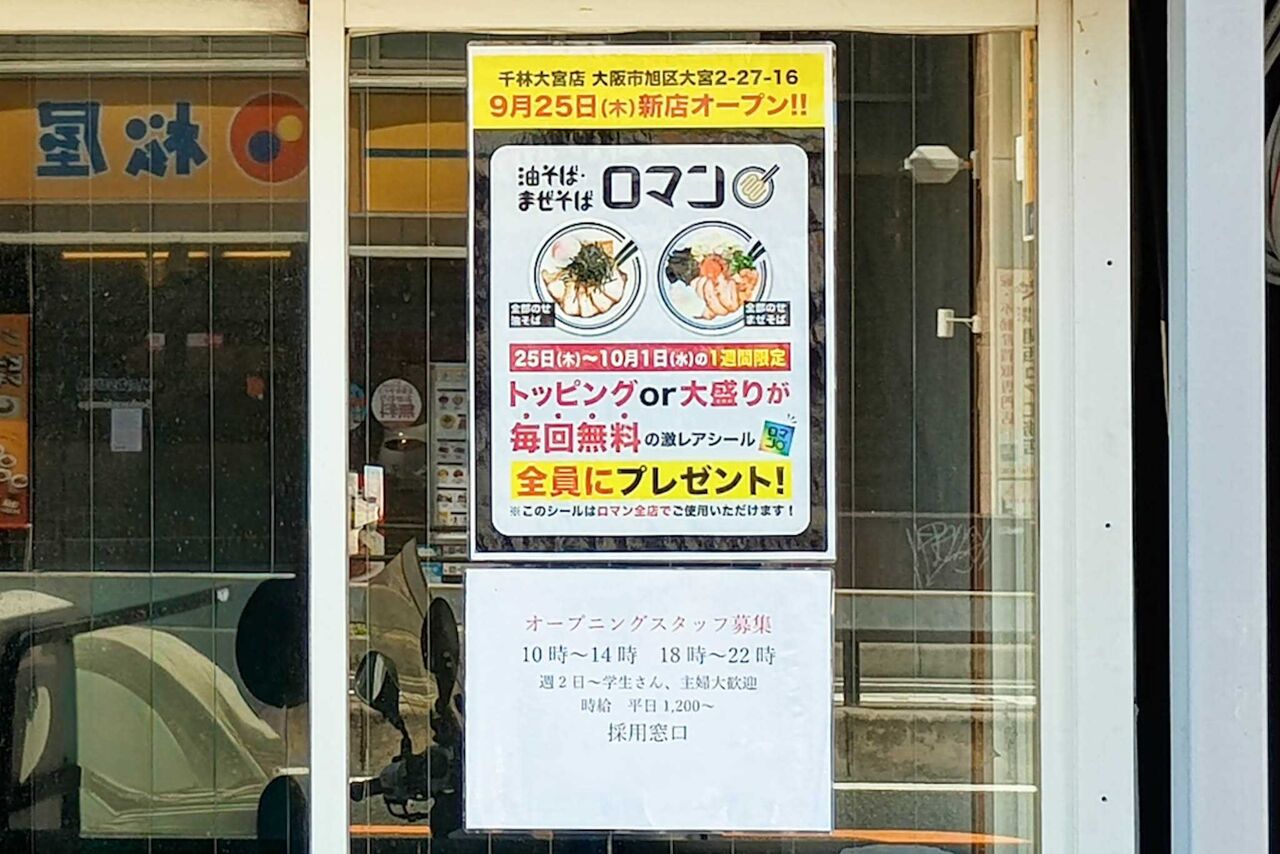【旭区】1号線ぞい大阪メトロ千林大宮駅ちかくに「油そば・まぜそば ロマン」ができるみたい。9月25日オープン