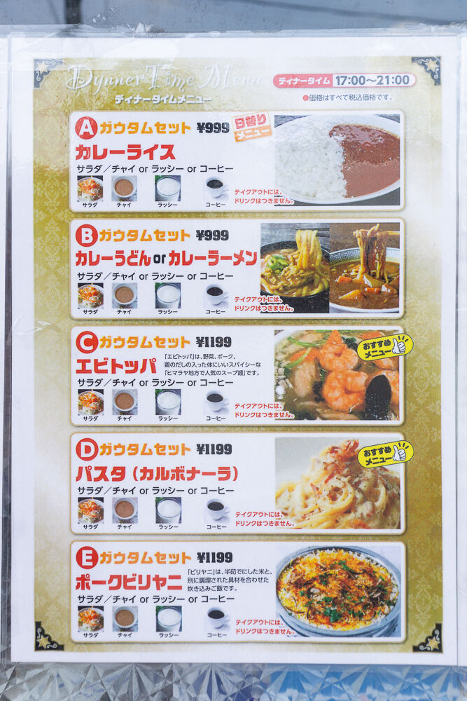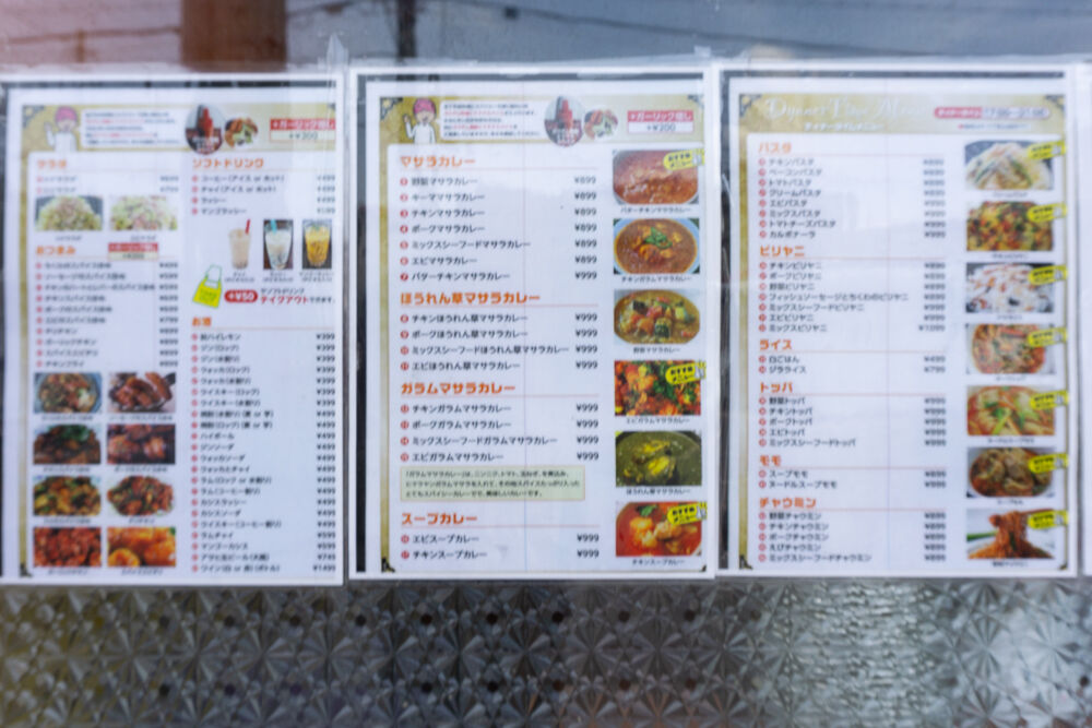 15種類以上のカレーのほか、パスタやライスなどのメニューやおつまみなどもあるようです。